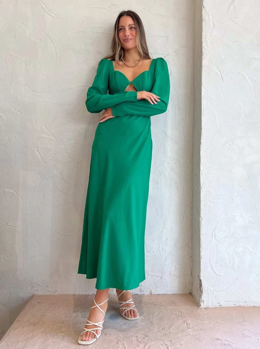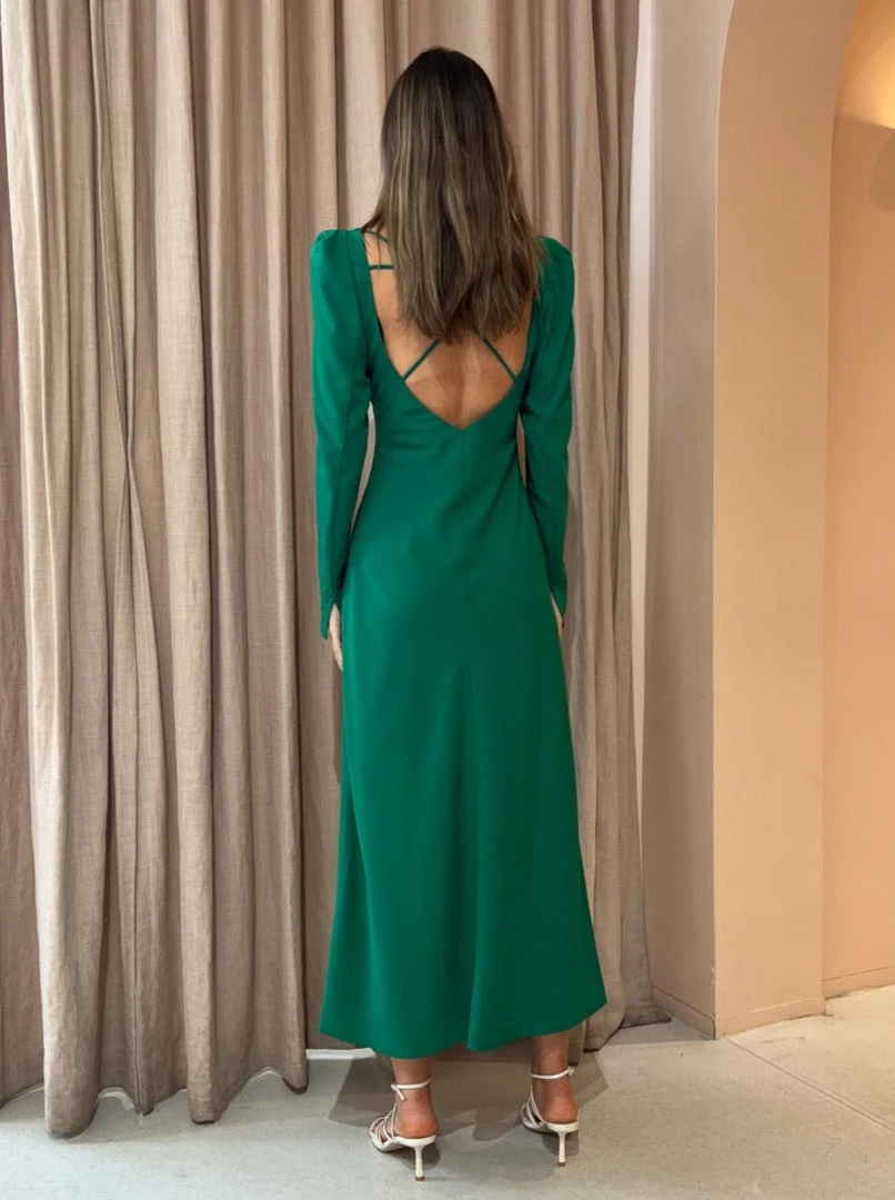 Bring bright and bold colour to your evening wear repetoire with By Johnny‘s Olivia Strap Back Full Length Dress in Forest Green.