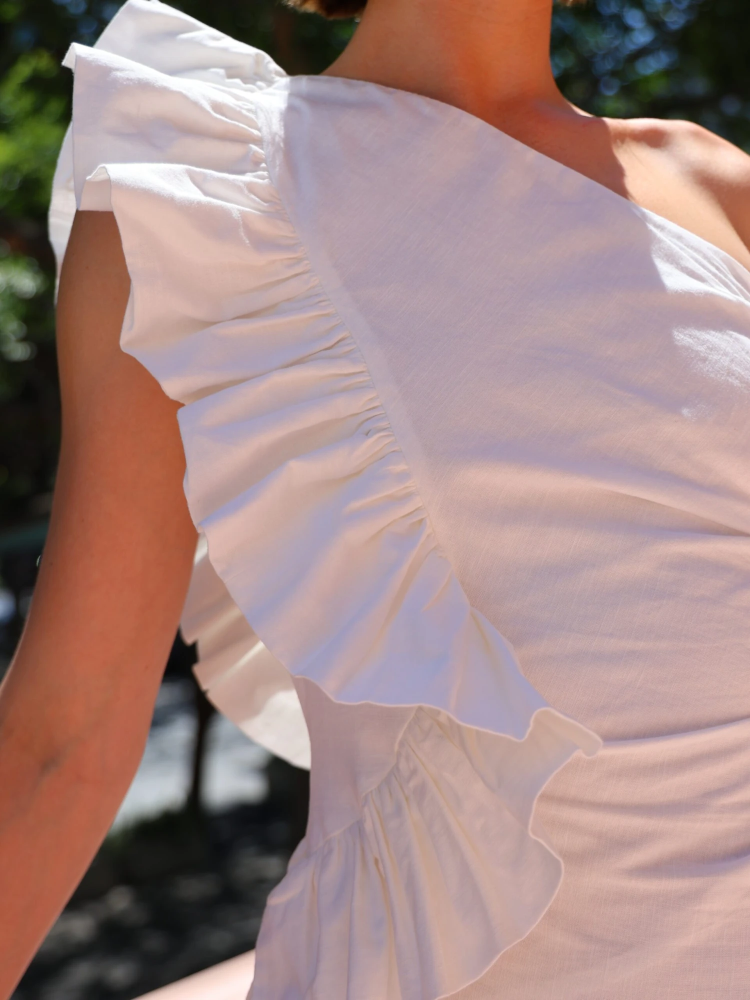 – Asymmetrical frills at skirt