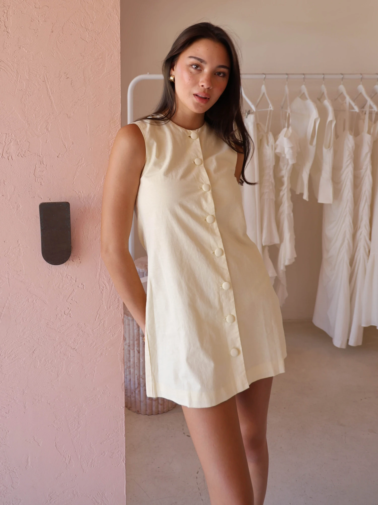 The By Nicola Celine Dress in Lemon is a fresh and stylish mini dress in a bright lemon colour way. Perfect for warmer days or evenings out, its cheerful hue adds a pop of colour to any wardrobe.