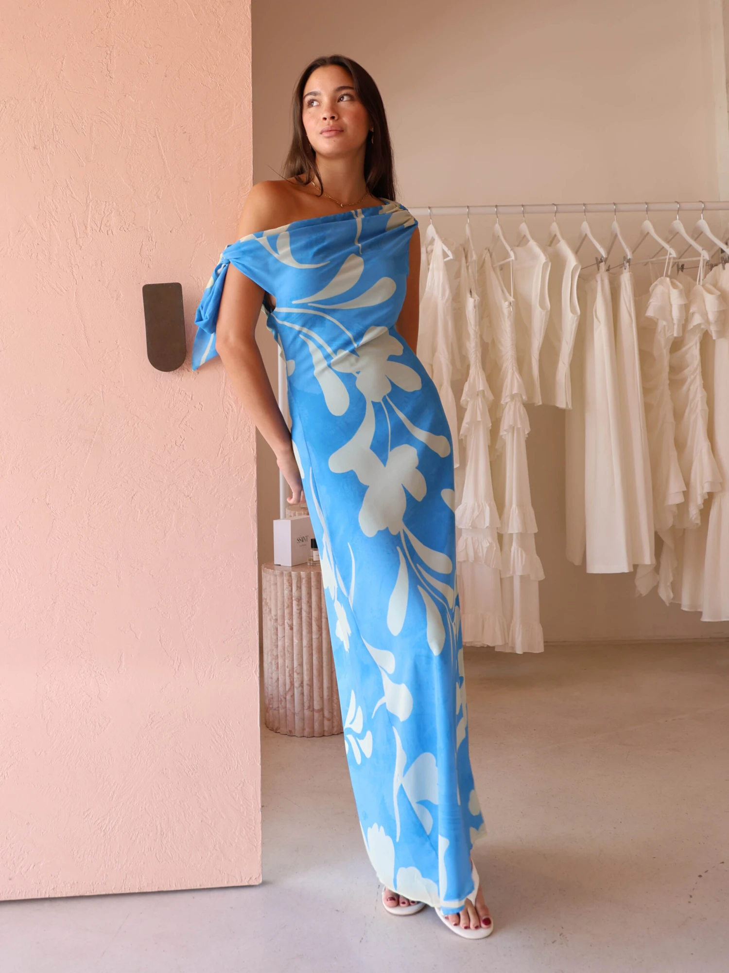 Elevate your wardrobe with the By Nicola Hailey One Shoulder Tie Maxi Dress in a stunning Capri print, designed for those who crave both style and comfort.