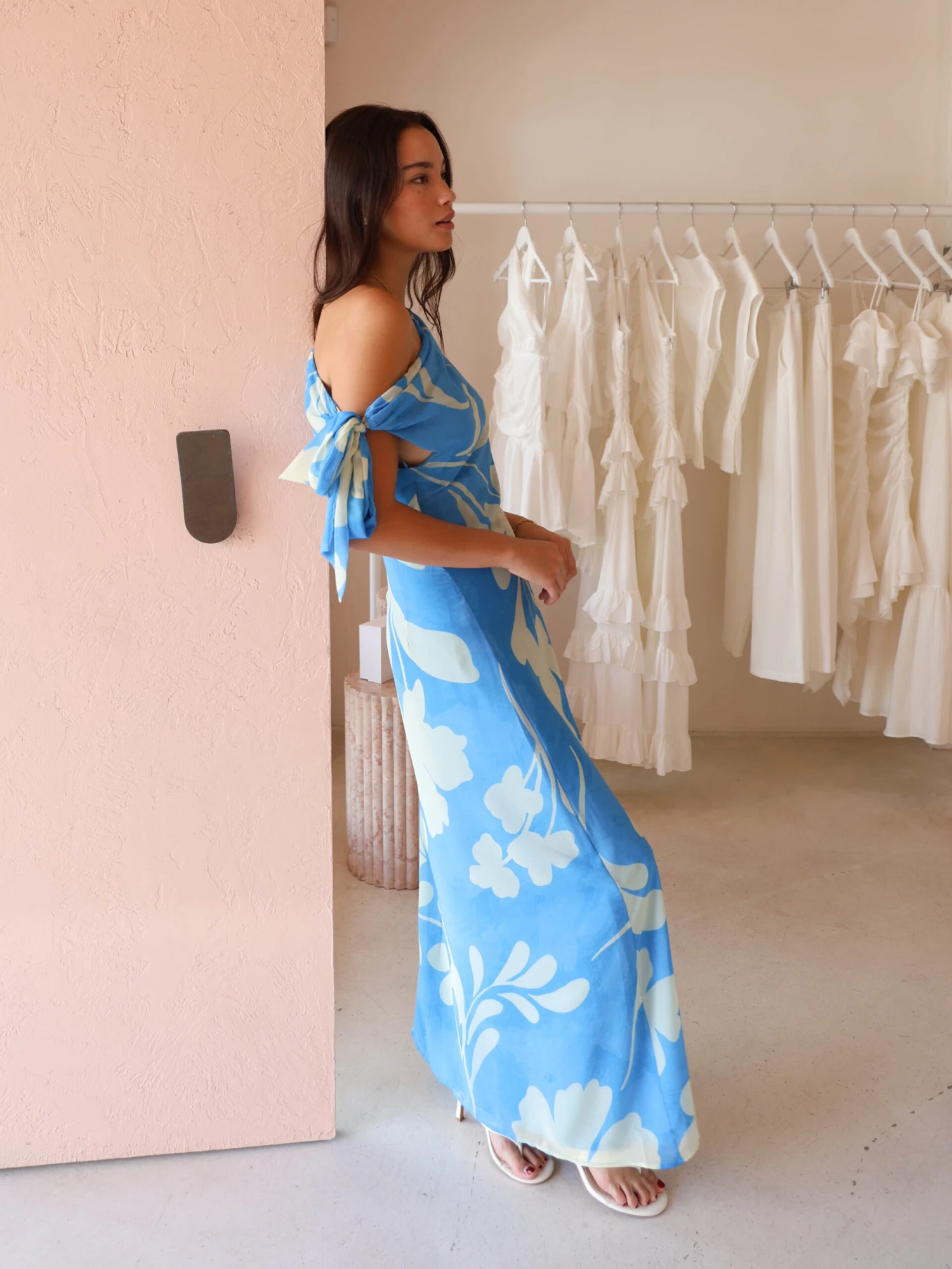 Crafted with a relaxed, off-the-shoulder fit, this dress offers effortless movement and a breathable feel, making it perfect for warm-weather days or evenings out.