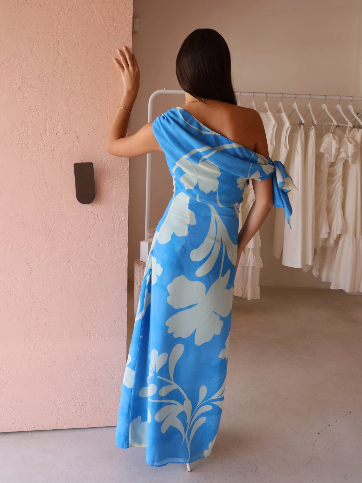 Perfect for any occasion, this elegant maxi dress features a unique one-shoulder design with a flattering tie detail, adding a touch of sophistication to your look.