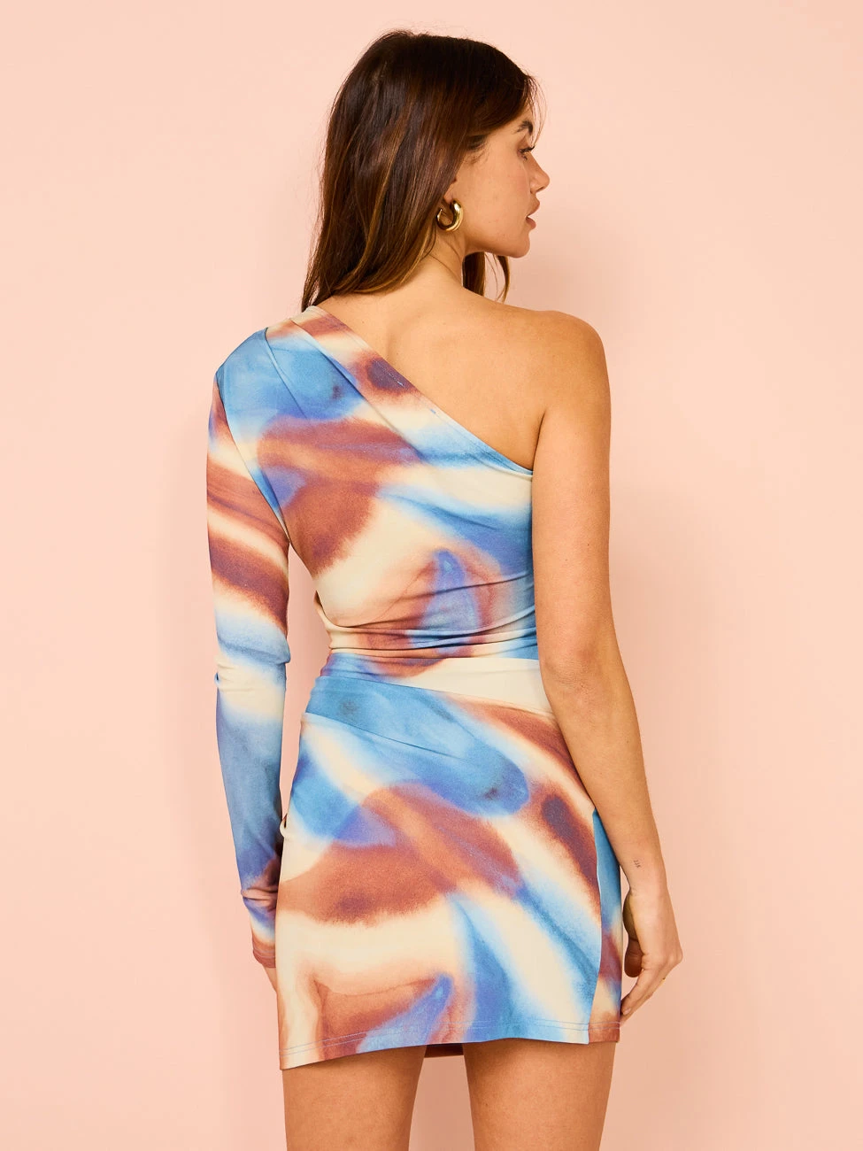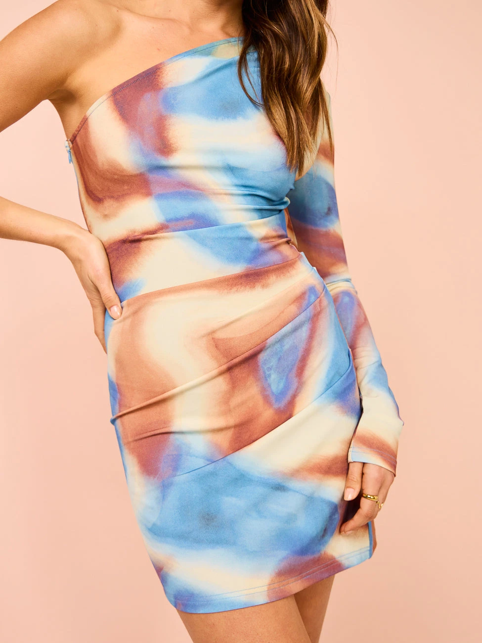 Bring bright colour to your weekend looks with the Issy One Shoulder Mini Dress in Blue Marble.