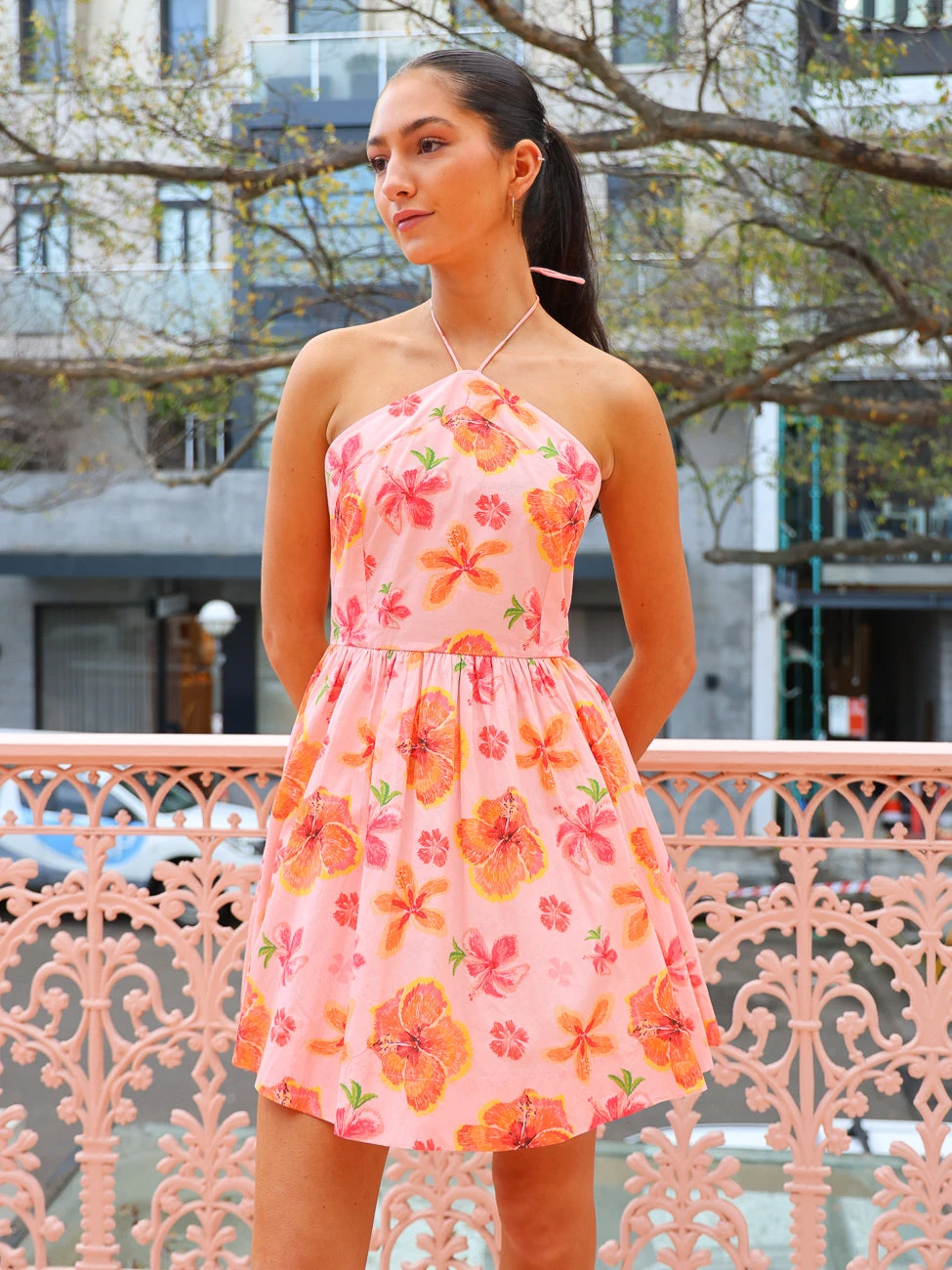 Sweet and flirty, Palm Noosa welcomes the Isabella Mini Dress in Pink Palms.